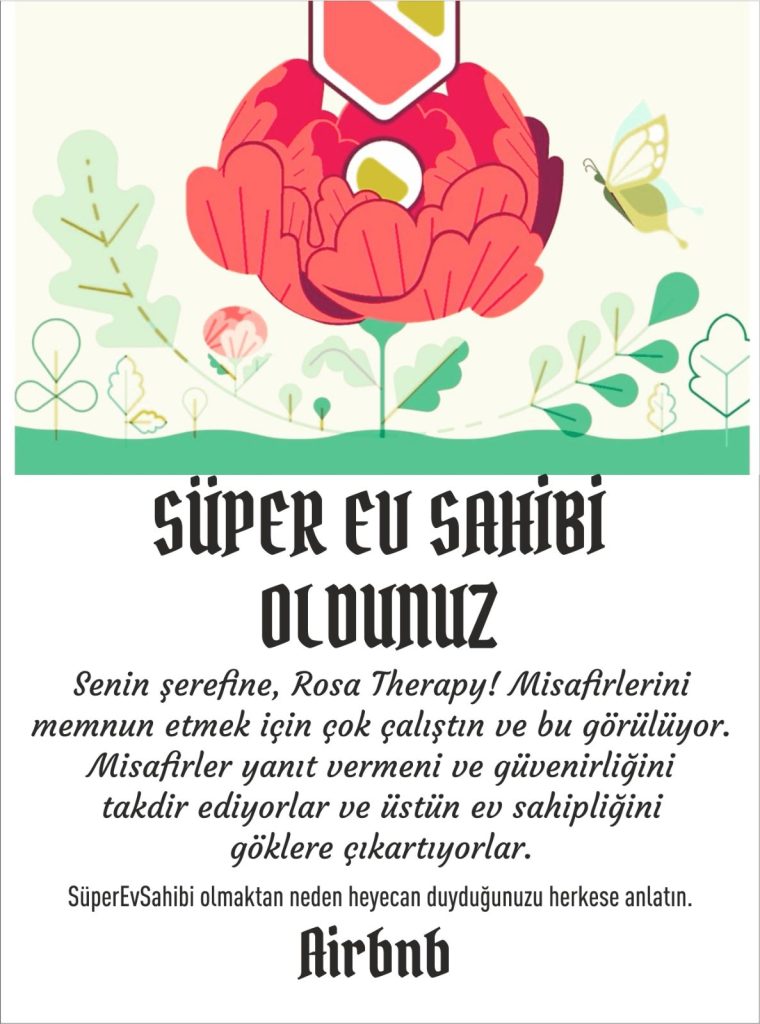 Airbnb'de tescilli kalite: SüperEvSahibi. Misafirlerimizin favorisi, hizmetin en iyisi.